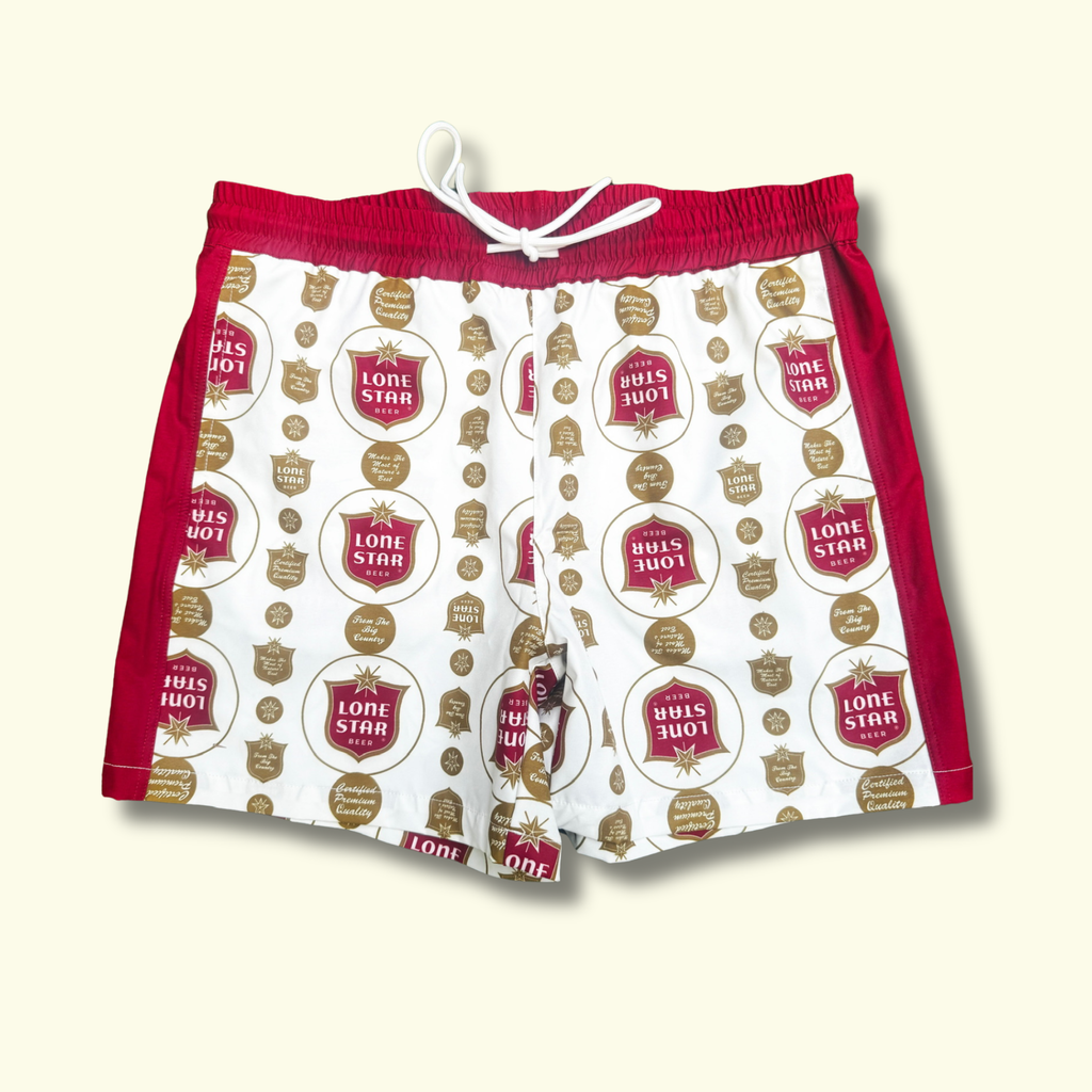 Get ready for summer with these O.G. Lone Star swim and summer shorts, officially licensed by Lone Star Beer. Designed with no liner for maximum comfort, these quick-dry, breathable, and stretchy shorts are perfect whether you’re hitting the beach or grabbing a cold one at the bar.
