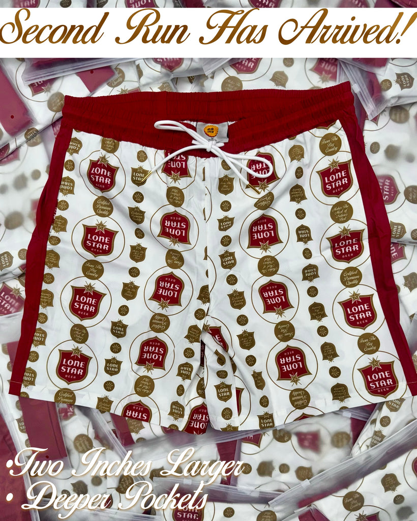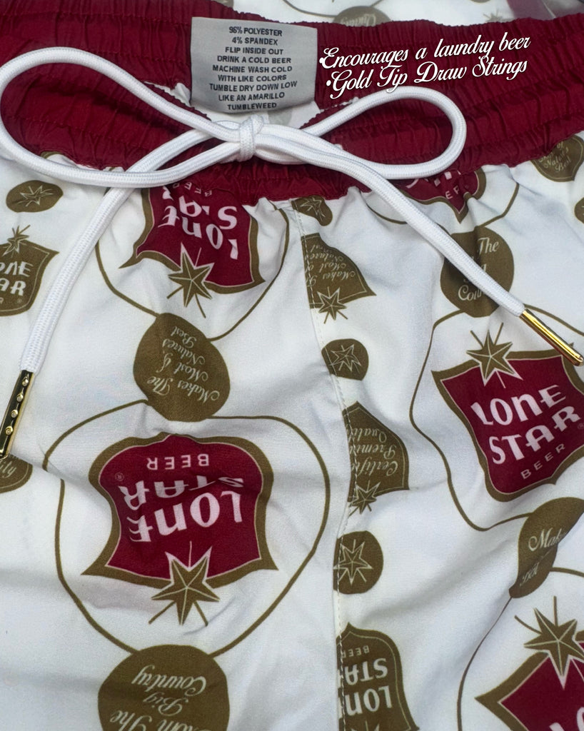 Get ready for summer with these O.G. Lone Star swim and summer shorts, officially licensed by Lone Star Beer. Designed with no liner for maximum comfort, these quick-dry, breathable, and stretchy shorts are perfect whether you’re hitting the beach or grabbing a cold one at the bar.
